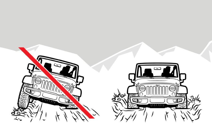 If your vehicle has the wheel width, it’s best to straddle ruts or gullies when possible. Go slow and do your best not to let one set of wheels slip into the crevice. Straddling will offer a more comfortable drive and keep your vehicle in an upright position to allow a better view of the trail.