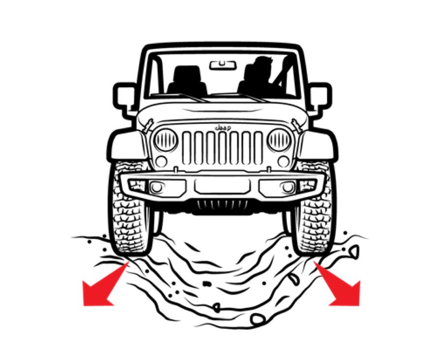 COMMIT TO THE PIT Driving with only two tires in the mud affects the clearance and weight distribution of your vehicle. Go all in or go around.
